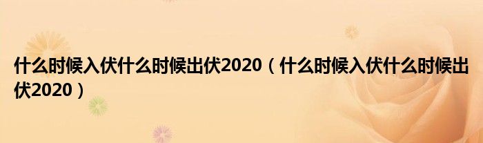 大家好,小安來為大家解答以上問題。什么時候入伏什么時候出伏2020,什么時候入伏什么時候出伏2020很多人還不知道,現在讓我們一起來看看吧!