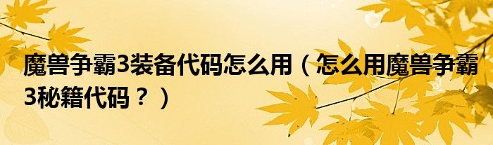 大家好,小安來為大家解答以上問題。魔獸爭霸3裝備代碼怎么用,怎么用魔獸爭霸3秘籍代碼?很多人還不知道,現(xiàn)在讓我們一起來看看吧!