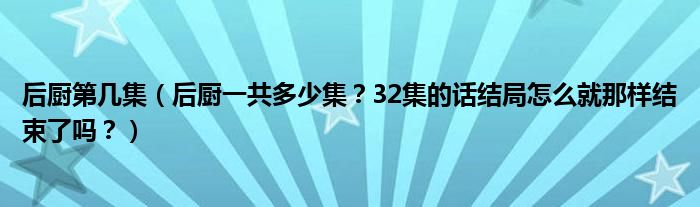 大家好,小安來(lái)為大家解答以上問(wèn)題。后廚第幾集,后廚一共多少集?32集的話結(jié)局怎么就那樣結(jié)束了嗎?很多人還不知道,現(xiàn)在讓我們一起來(lái)看看吧!