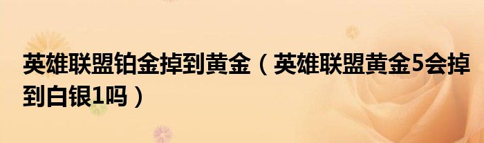 大家好,小安來為大家解答以上問題。英雄聯盟鉑金掉到黃金,英雄聯盟黃金5會掉到白銀1嗎很多人還不知道,現在讓我們一起來看看吧!