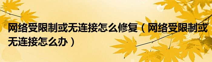 大家好,小安來為大家解答以上問題。網絡受限制或無連接怎么修復,網絡受限制或無連接怎么辦很多人還不知道,現在讓我們一起來看看吧!