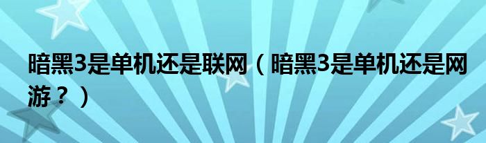大家好,小安來為大家解答以上問題。暗黑3是單機還是聯網,暗黑3是單機還是網游?很多人還不知道,現在讓我們一起來看看吧!