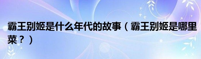 大家好,小安來為大家解答以上問題。霸王別姬是什么年代的故事,霸王別姬是哪里菜?很多人還不知道,現在讓我們一起來看看吧!