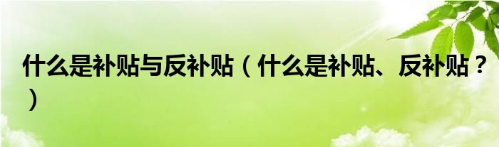 大家好,小安來為大家解答以上問題。什么是補(bǔ)貼與反補(bǔ)貼,什么是補(bǔ)貼、反補(bǔ)貼?很多人還不知道,現(xiàn)在讓我們一起來看看吧!