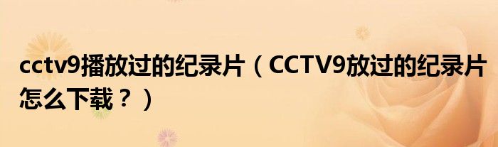 大家好,小安來為大家解答以上問題。cctv9播放過的紀(jì)錄片,CCTV9放過的紀(jì)錄片怎么下載?很多人還不知道,現(xiàn)在讓我們一起來看看吧!