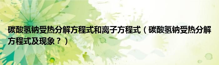 大家好,小安來為大家解答以上問題。碳酸氫鈉受熱分解方程式和離子方程式,碳酸氫鈉受熱分解方程式及現象?很多人還不知道,現在讓我們一起來看看吧!