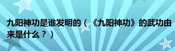 大家好,小安來為大家解答以上問題。九陽神功是誰發明的,《九陽神功》的武功由來是什么?很多人還不知道,現在讓我們一起來看看吧!