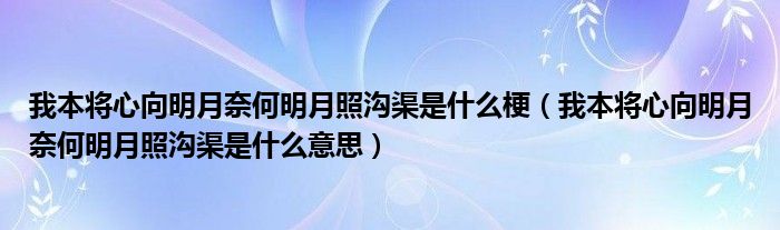 大家好,小安來為大家解答以上問題。我本將心向明月奈何明月照溝渠是什么梗,我本將心向明月奈何明月照溝渠是什么意思很多人還不知道,現在讓我們一起來看看吧!
