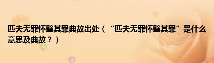 1、 “匹夫無罪,攜美玉為罪”的意思是:百姓無罪,卻因藏玉而獲罪