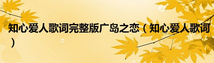 大家好,小安來為大家解答以上問題。知心愛人歌詞完整版廣島之戀,知心愛人歌詞很多人還不知道,現(xiàn)在讓我們一起來看看吧!