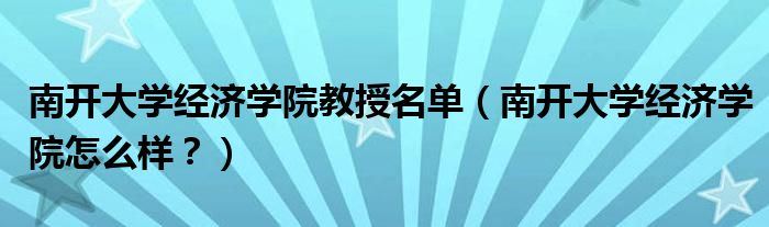 大家好,小安來為大家解答以上問題。南開大學經濟學院教授名單,南開大學經濟學院怎么樣?很多人還不知道,現在讓我們一起來看看吧!