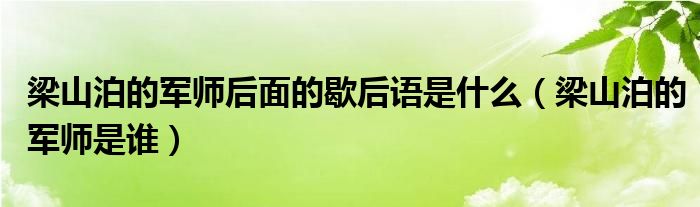 大家好,小安來為大家解答以上問題。梁山泊的軍師后面的歇后語是什么,梁山泊的軍師是誰很多人還不知道,現在讓我們一起來看看吧!