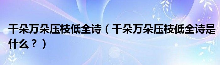 大家好,小安來為大家解答以上問題。千朵萬朵壓枝低全詩,千朵萬朵壓枝低全詩是什么?很多人還不知道,現在讓我們一起來看看吧!