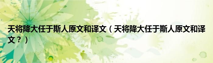 大家好,小安來為大家解答以上問題。天將降大任于斯人原文和譯文,天將降大任于斯人原文和譯文?很多人還不知道,現在讓我們一起來看看吧!