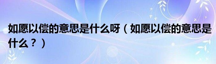 大家好,小安來為大家解答以上問題。如愿以償的意思是什么呀,如愿以償的意思是什么?很多人還不知道,現在讓我們一起來看看吧!