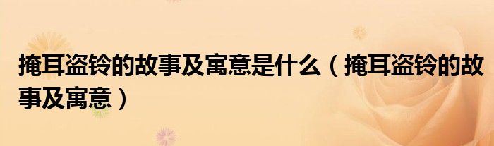 大家好,小安來為大家解答以上問題。掩耳盜鈴的故事及寓意是什么,掩耳盜鈴的故事及寓意很多人還不知道,現在讓我們一起來看看吧!