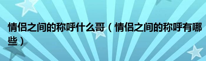 大家好,小安來為大家解答以上問題。情侶之間的稱呼什么哥,情侶之間的稱呼有哪些很多人還不知道,現(xiàn)在讓我們一起來看看吧!