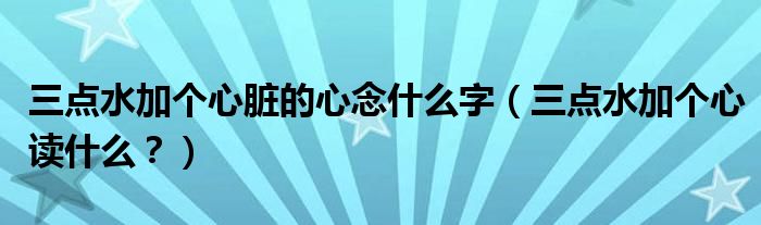 大家好,小安來為大家解答以上問題。三點(diǎn)水加個(gè)心臟的心念什么字,三點(diǎn)水加個(gè)心讀什么?很多人還不知道,現(xiàn)在讓我們一起來看看吧!