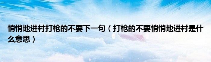 大家好,小安來為大家解答以上問題。悄悄地進村打槍的不要下一句,打槍的不要悄悄地進村是什么意思很多人還不知道,現在讓我們一起來看看吧!