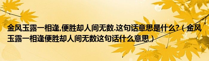 大家好,小安來為大家解答以上問題。金風(fēng)玉露一相逢,便勝卻人間無數(shù).這句話意思是什么?,金風(fēng)玉露一相逢便勝卻人間無數(shù)這句話什么意思很多人還不知道,現(xiàn)在讓我們一起來看看吧!