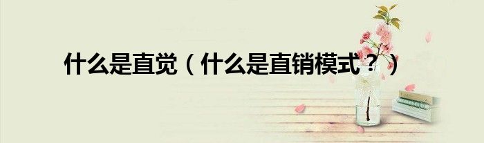 大家好,小安來為大家解答以上問題。什么是直覺,什么是直銷模式?很多人還不知道,現在讓我們一起來看看吧!