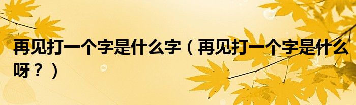 大家好,小安來(lái)為大家解答以上問(wèn)題。再見(jiàn)打一個(gè)字是什么字,再見(jiàn)打一個(gè)字是什么呀?很多人還不知道,現(xiàn)在讓我們一起來(lái)看看吧!