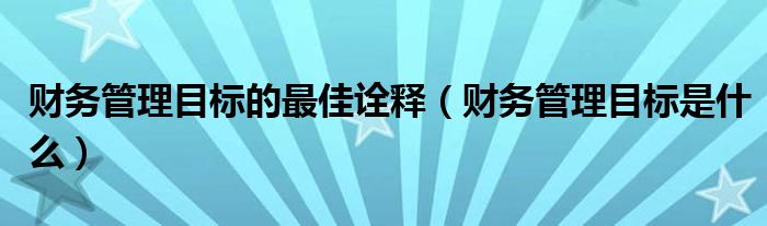大家好,小安來為大家解答以上問題。財務管理目標的最佳詮釋,財務管理目標是什么很多人還不知道,現在讓我們一起來看看吧!