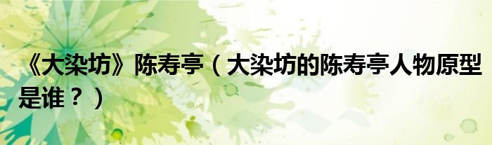 大家好,小安來為大家解答以上問題。《大染坊》陳壽亭,大染坊的陳壽亭人物原型是誰?很多人還不知道,現在讓我們一起來看看吧!