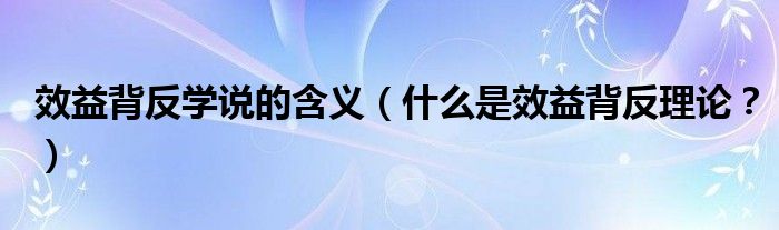 大家好,小安來為大家解答以上問題。效益背反學說的含義,什么是效益背反理論?很多人還不知道,現在讓我們一起來看看吧!
