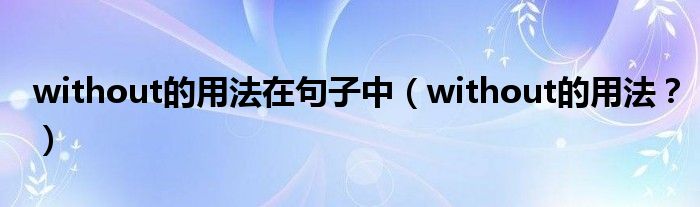 大家好,小安來為大家解答以上問題。without的用法在句子中,without的用法?很多人還不知道,現在讓我們一起來看看吧!