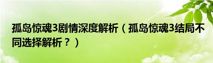 大家好,小安來為大家解答以上問題。孤島驚魂3劇情深度解析,孤島驚魂3結局不同選擇解析?很多人還不知道,現在讓我們一起來看看吧!