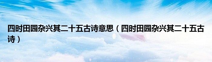 大家好,小安來為大家解答以上問題。四時田園雜興其二十五古詩意思,四時田園雜興其二十五古詩很多人還不知道,現在讓我們一起來看看吧!