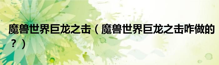 大家好,小安來為大家解答以上問題。魔獸世界巨龍之擊,魔獸世界巨龍之擊咋做的?很多人還不知道,現在讓我們一起來看看吧!