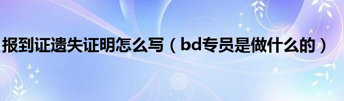 大家好,小安來為大家解答以上問題。報到證遺失證明怎么寫,bd專員是做什么的很多人還不知道,現在讓我們一起來看看吧!