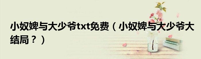大家好,小安來(lái)為大家解答以上問(wèn)題。小奴婢與大少爺txt免費(fèi),小奴婢與大少爺大結(jié)局?很多人還不知道,現(xiàn)在讓我們一起來(lái)看看吧!