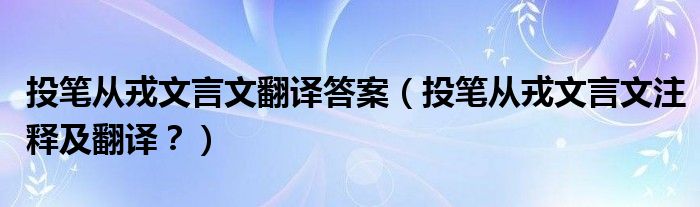 大家好,小安來為大家解答以上問題。投筆從戎文言文翻譯答案,投筆從戎文言文注釋及翻譯?很多人還不知道,現(xiàn)在讓我們一起來看看吧!