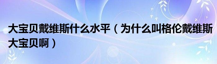 大家好,小安來為大家解答以上問題。大寶貝戴維斯什么水平,為什么叫格倫戴維斯大寶貝啊很多人還不知道,現(xiàn)在讓我們一起來看看吧!