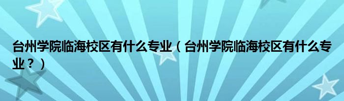 大家好,小安來為大家解答以上問題。臺州學院臨海校區有什么專業,臺州學院臨海校區有什么專業?很多人還不知道,現在讓我們一起來看看吧!