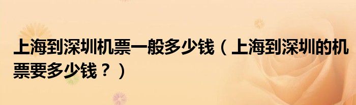 大家好,小安來為大家解答以上問題。上海到深圳機票一般多少錢,上海到深圳的機票要多少錢?很多人還不知道,現在讓我們一起來看看吧!