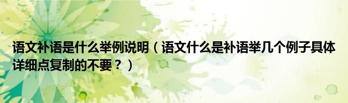 大家好,小安來為大家解答以上問題。語文補語是什么舉例說明,語文什么是補語舉幾個例子具體詳細點復制的不要?很多人還不知道,現在讓我們一起來看看吧!