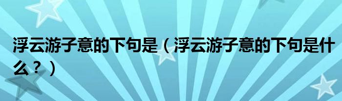 大家好,小安來為大家解答以上問題。浮云游子意的下句是,浮云游子意的下句是什么?很多人還不知道,現(xiàn)在讓我們一起來看看吧!