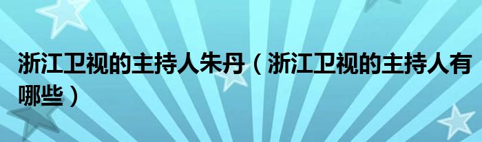 大家好,小安來為大家解答以上問題。浙江衛視的主持人朱丹,浙江衛視的主持人有哪些很多人還不知道,現在讓我們一起來看看吧!