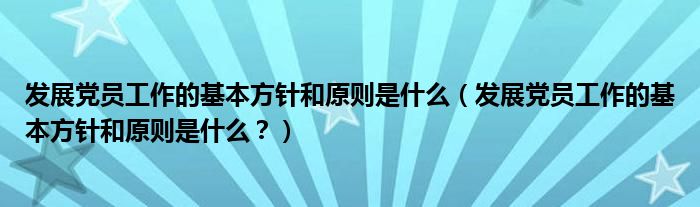 大家好,小安來為大家解答以上問題。發展黨員工作的基本方針和原則是什么,發展黨員工作的基本方針和原則是什么?很多人還不知道,現在讓我們一起來看看吧!