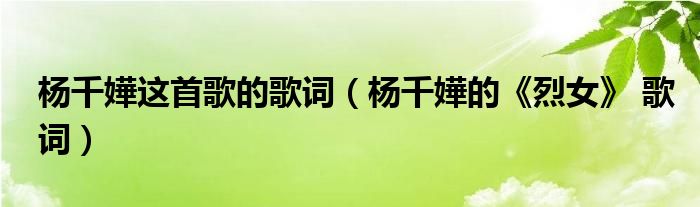 大家好,小安來為大家解答以上問題。楊千嬅這首歌的歌詞,楊千嬅的《烈女》 歌詞很多人還不知道,現在讓我們一起來看看吧!