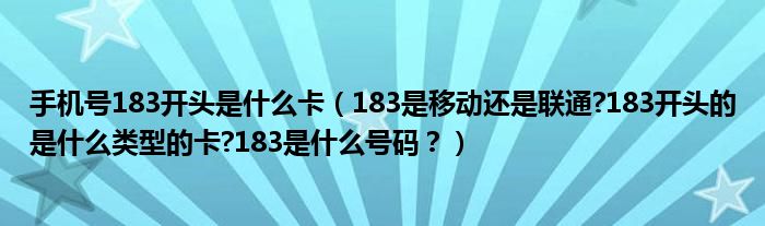 大家好,小安來為大家解答以上問題。手機號183開頭是什么卡,183是移動還是聯通?183開頭的是什么類型的卡?183是什么號碼?很多人還不知道,現在讓我們一起來看看吧!