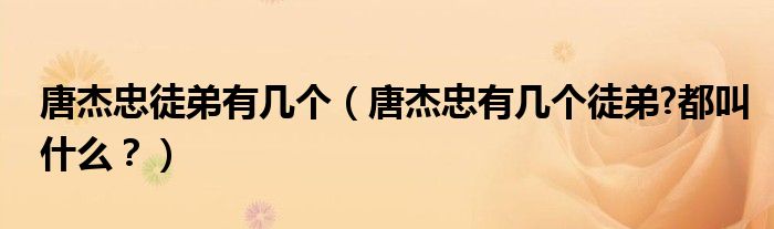 大家好,小安來為大家解答以上問題。唐杰忠徒弟有幾個,唐杰忠有幾個徒弟?都叫什么?很多人還不知道,現在讓我們一起來看看吧!