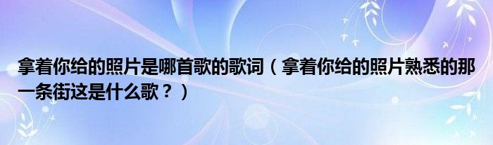 大家好,小安來為大家解答以上問題。拿著你給的照片是哪首歌的歌詞,拿著你給的照片熟悉的那一條街這是什么歌?很多人還不知道,現在讓我們一起來看看吧!