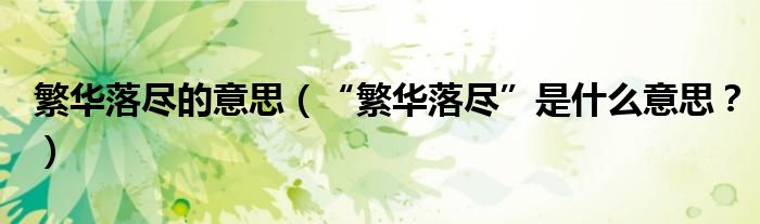 大家好,小安來為大家解答以上問題。繁華落盡的意思,“繁華落盡”是什么意思?很多人還不知道,現在讓我們一起來看看吧!