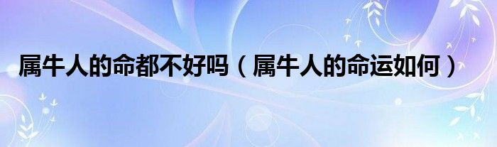 大家好,小安來為大家解答以上問題。屬牛人的命都不好嗎,屬牛人的命運如何很多人還不知道,現在讓我們一起來看看吧!