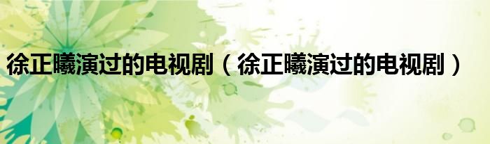 大家好,小安來為大家解答以上問題。徐正曦演過的電視劇,徐正曦演過的電視劇很多人還不知道,現在讓我們一起來看看吧!